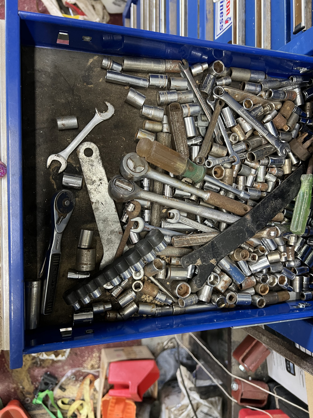HOMAK ROLLING TOOL BOX TOP AND BOTTOM WITH MISC TOOLS (#422) ESTATE SALE