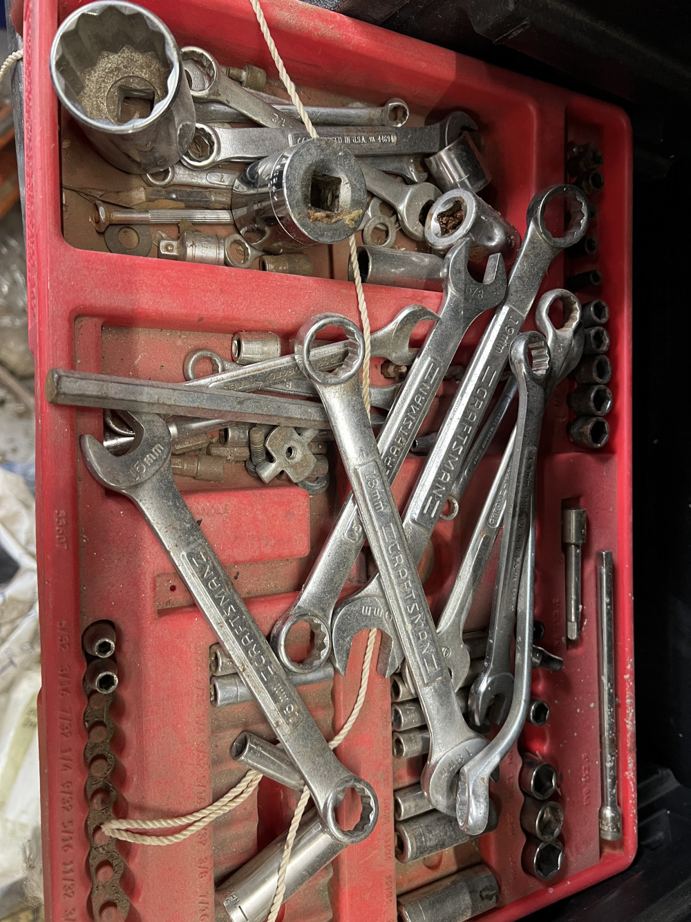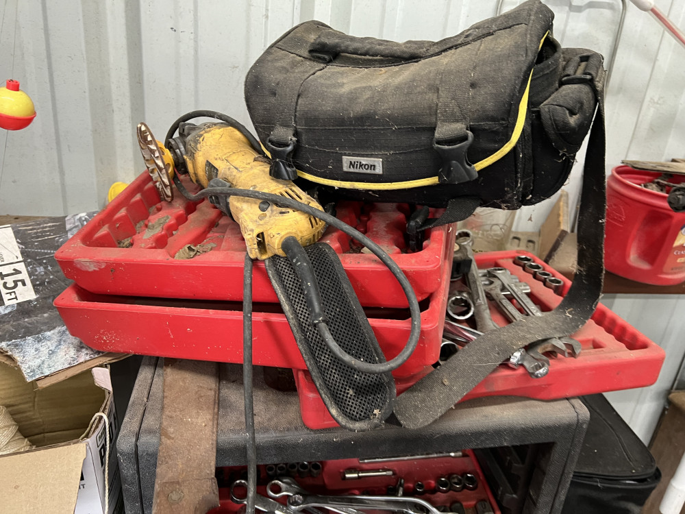 BLACK TABLE W MISC TOOLD (#463) ESTATE SALE