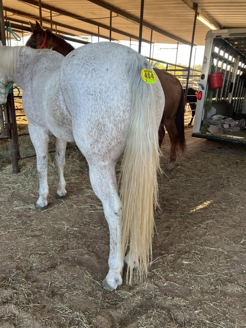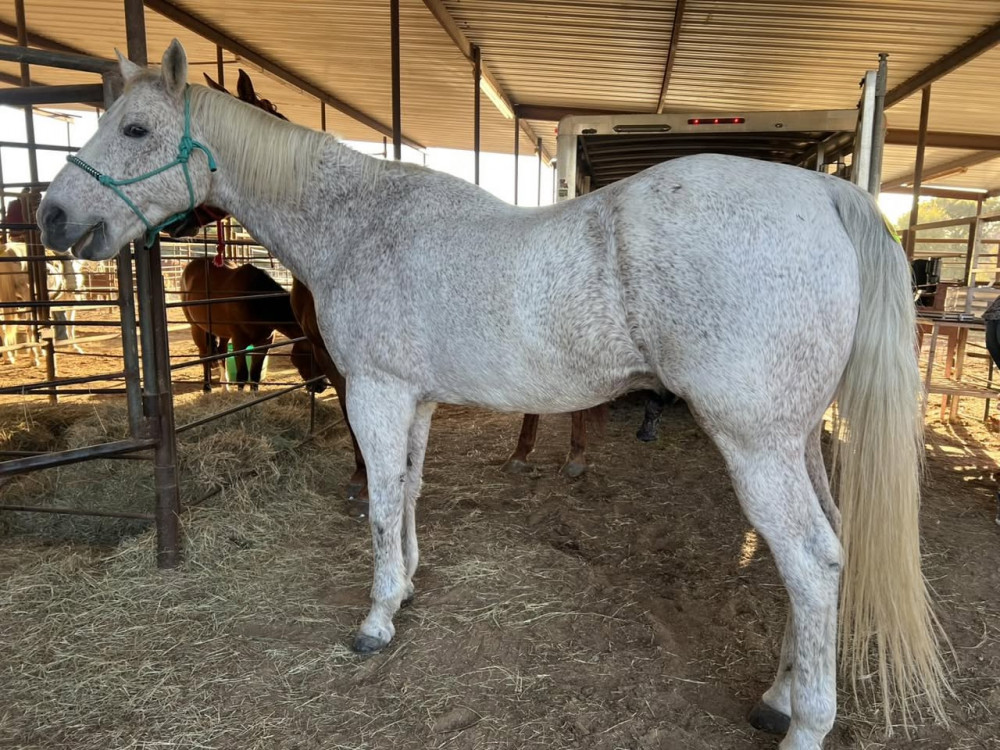QH 13YR GREY GELDING (#404) NOVEMBER 15,2025 HORSE SALE SADDLES START@ 6PM