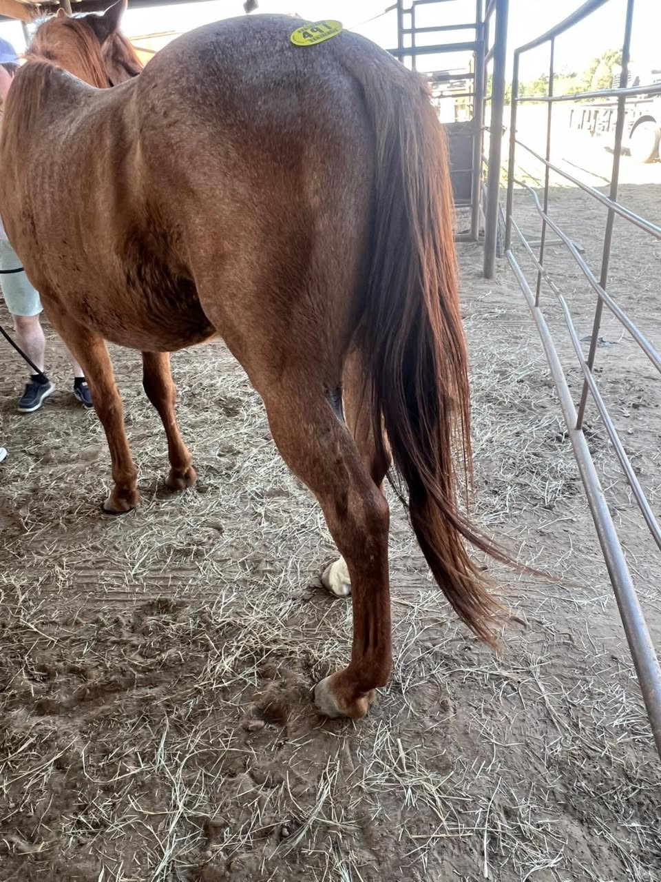 QH 7 YR RED ROAN GELDING (#491) NOVEMBER 15,2025 HORSE SALE SADDLES START@ 6PM