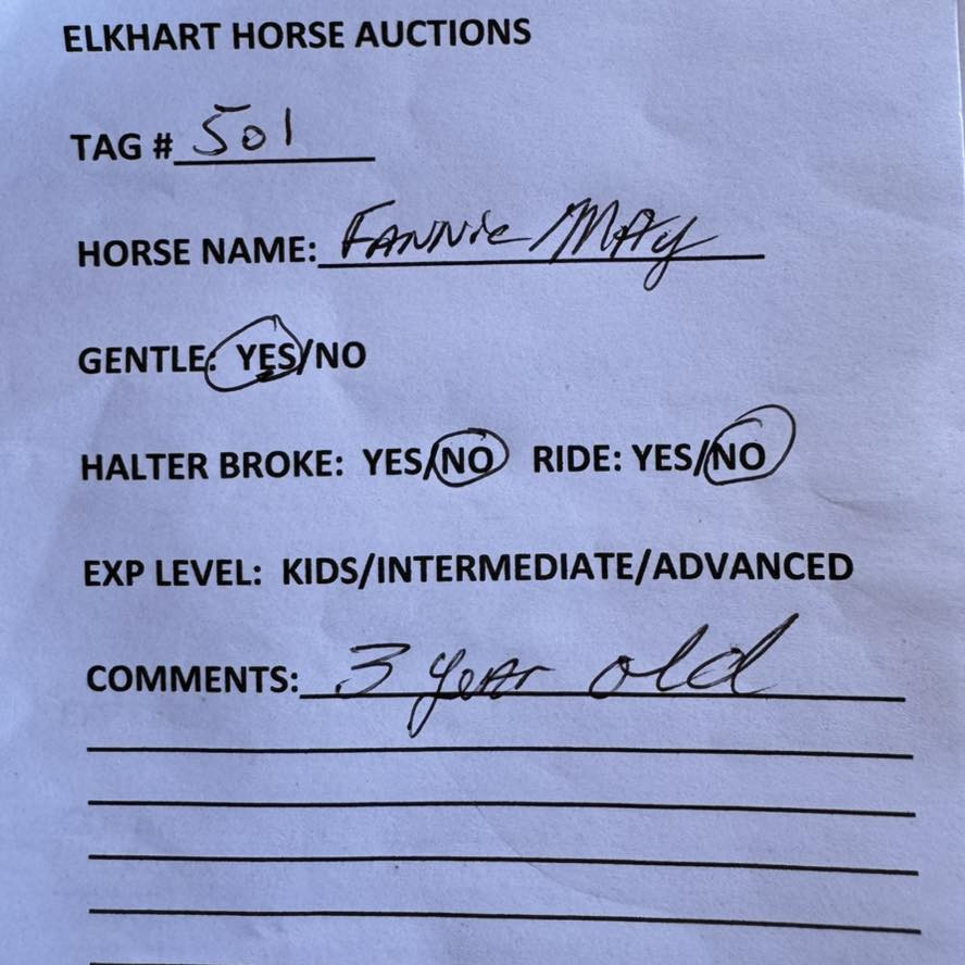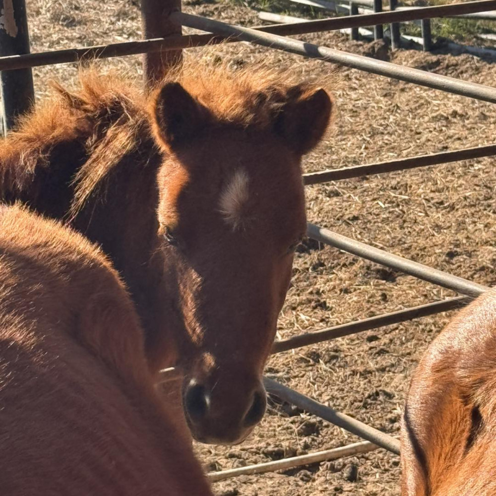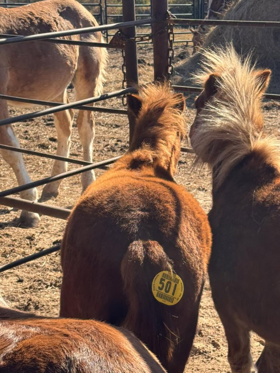 MINI 3 YR RED MARE (#501) NOVEMBER 15,2025 HORSE SALE SADDLES START@ 6PM