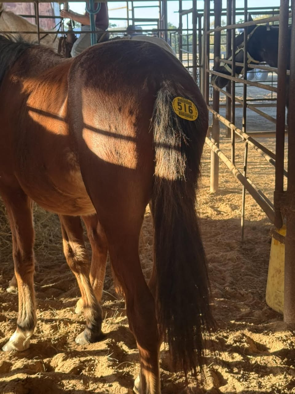 QH 2 YR BAY FILLY (#516) NOVEMBER 15,2025 HORSE SALE SADDLES START@ 6PM