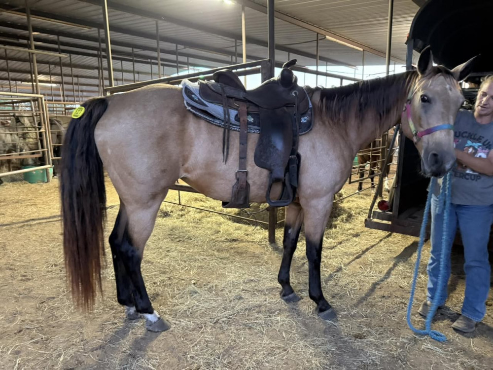 QH 18 YR BUCKSKIN MARE (#527) NOVEMBER 15,2025 HORSE SALE SADDLES START@ 6PM