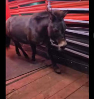 This little lady is a rare find — a dark chocolate brown mini molly mule with a sweet nature and plenty of potential. She’s already accustomed to life among a variety of animals, making her a versatile addition to any farm or homestead. Her rich chocolate coat makes her standout in any herd. She is calm and adaptable; she’s the kind of mule that brings harmony to the barnyard.