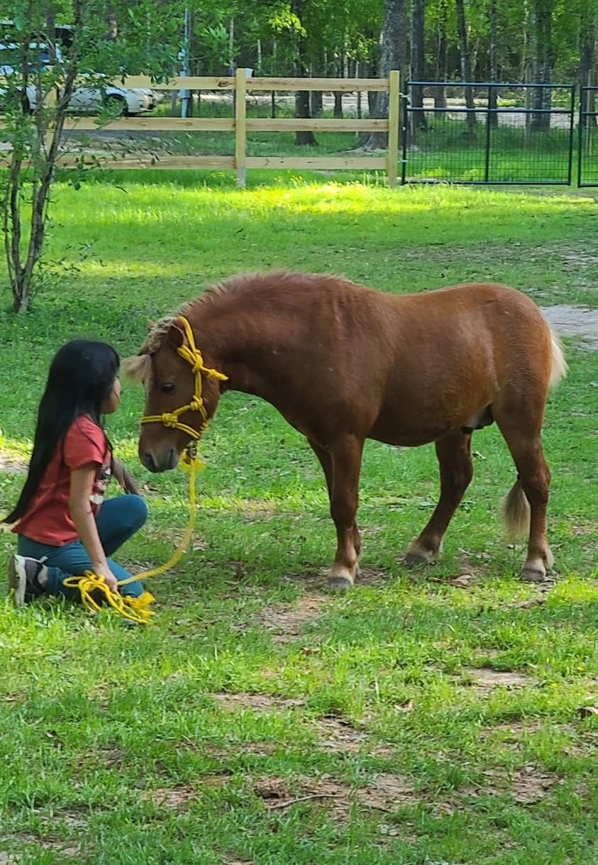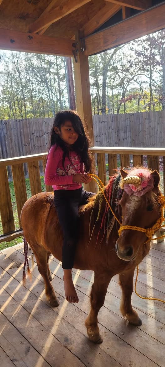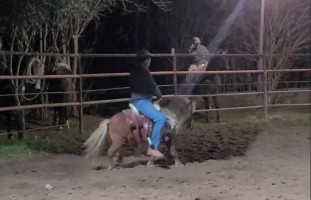 He's a 7 year old stallion. He knows he's all boy when it comes to other males but under saddle he knows when it's time to work. He loads, leads, rides solo, and stands tied. He's been in trail rides, parades, Hollween dress ups, anything a little girl would do with a pony. The older boys have taken him to practice roping and he kept up just fine with the big horses. He hasn't bucked, bolted, or acted out of pocket.