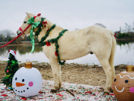 Lead lines perfectly for the little ones, but bigger kids can ride him out too. He hasn't spooked, doesn't get worked up about anything. Just a nice, steady, going pony that does his job.
