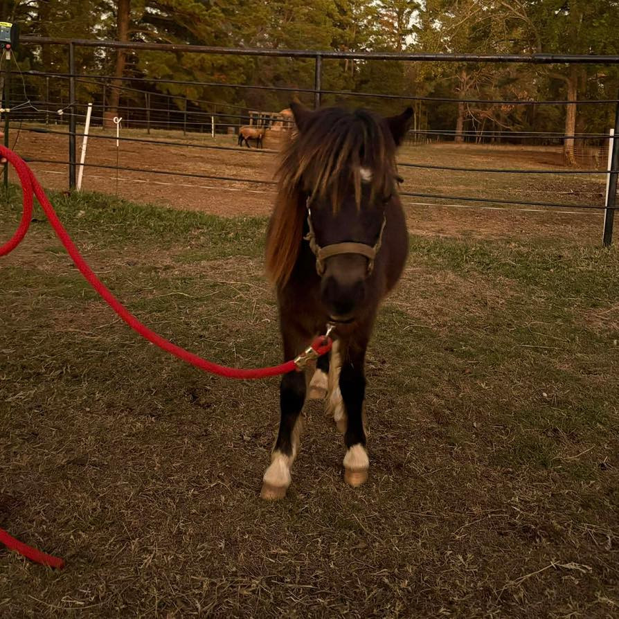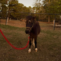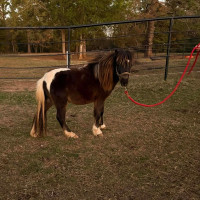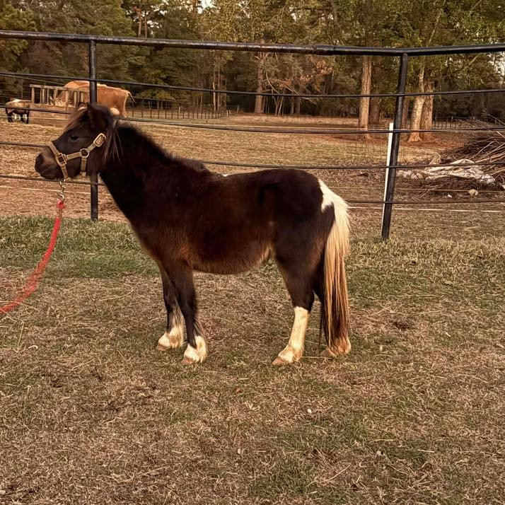 This is rocket he stands 35in tall and is 2 years old he rides and drives and loves people he lies down and will lead on the wagon ,loads and unloads and is a very sweet little guy
