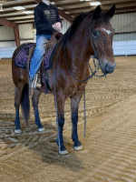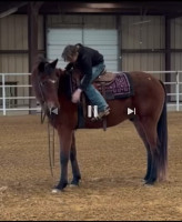 Domino is a 15yr old bay Appaloosa gelding that stands 15 hands tall. He is a super cool horse, the kids have played with the ball off him, played basketball, trail rode, checked the mail, and rode all over the ranch with him. He neck reins, will walk, trot and lope off when ask with a good stop. He leads, loads, stands tied, stands to be saddled, mounted and won’t move off till ask. He is gentle for the kids to pick up his feet, groom, bathe, and be all around on the ground. He’s NOT skittish or spooky. He rides quiet and gentle. He’s been rode on our indoor arena as well as outside. Bareback, saddled, bridle or halter he don’t care any way you want to ride him.
