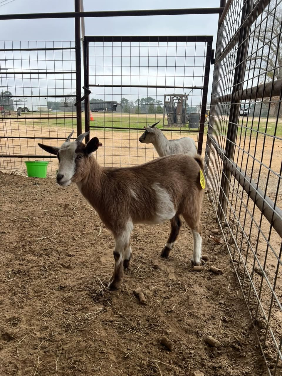 PYGMY GOAT 6 MONTH BROWN/WH FEMALE (#332) JANUARY 3 2025 USED TACK AND HORSE SALE STARTS AT 1 PM
