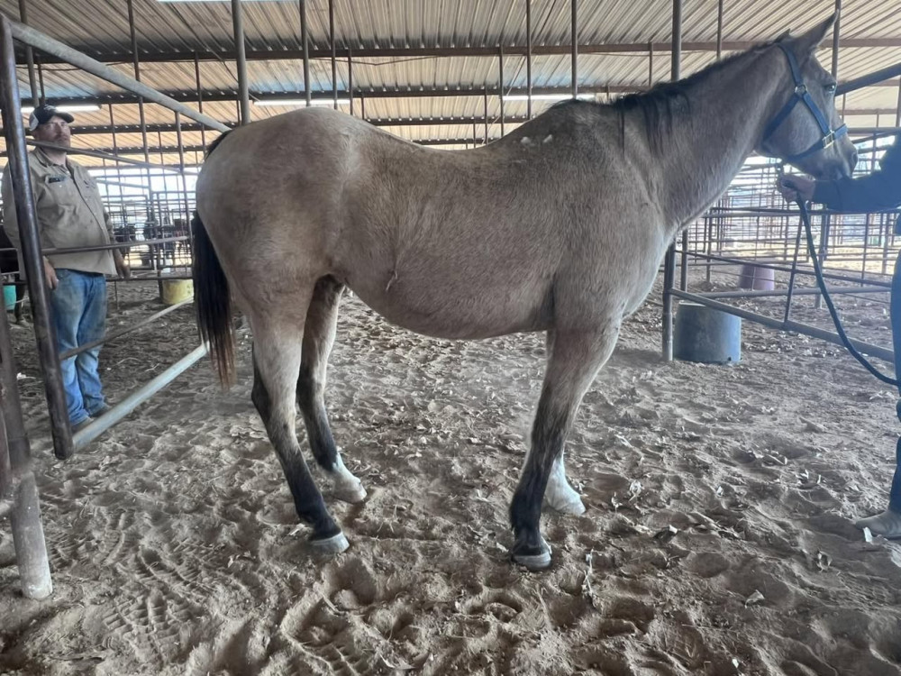 QH 14 YR BUCKSKIN MARE (#359) JANUARY 3 2025 USED TACK AND HORSE SALE STARTS AT 1 PM