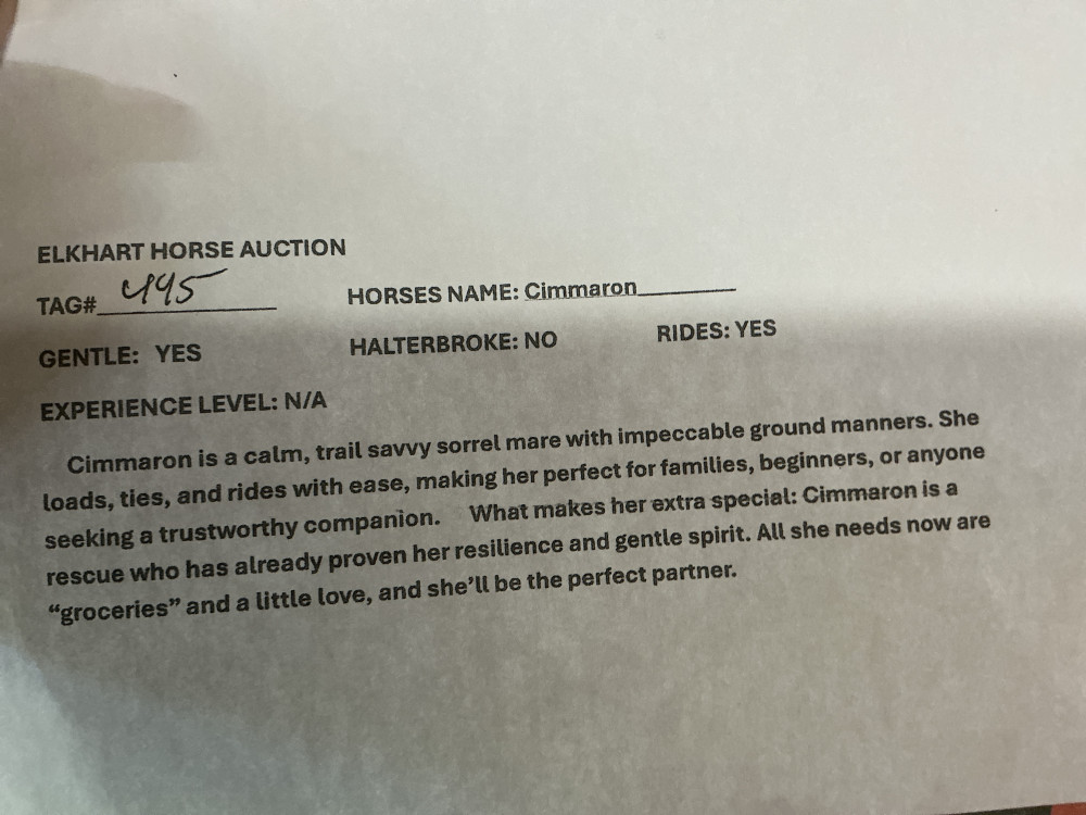 Call Trail savvy, sorrel mayor with impeccable girl manners. She loads ties and rides with ease. Perfect for family beginners or anyone. She is a rescue who has already proven her resilience and gentle spirit. She needs groceries. .