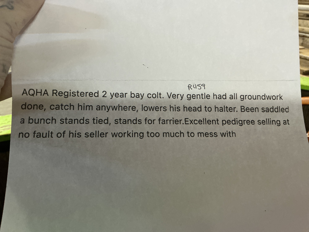 R QH 2 YR BAY STUD (#459R) HORSE SALE JANUARY 10,2026