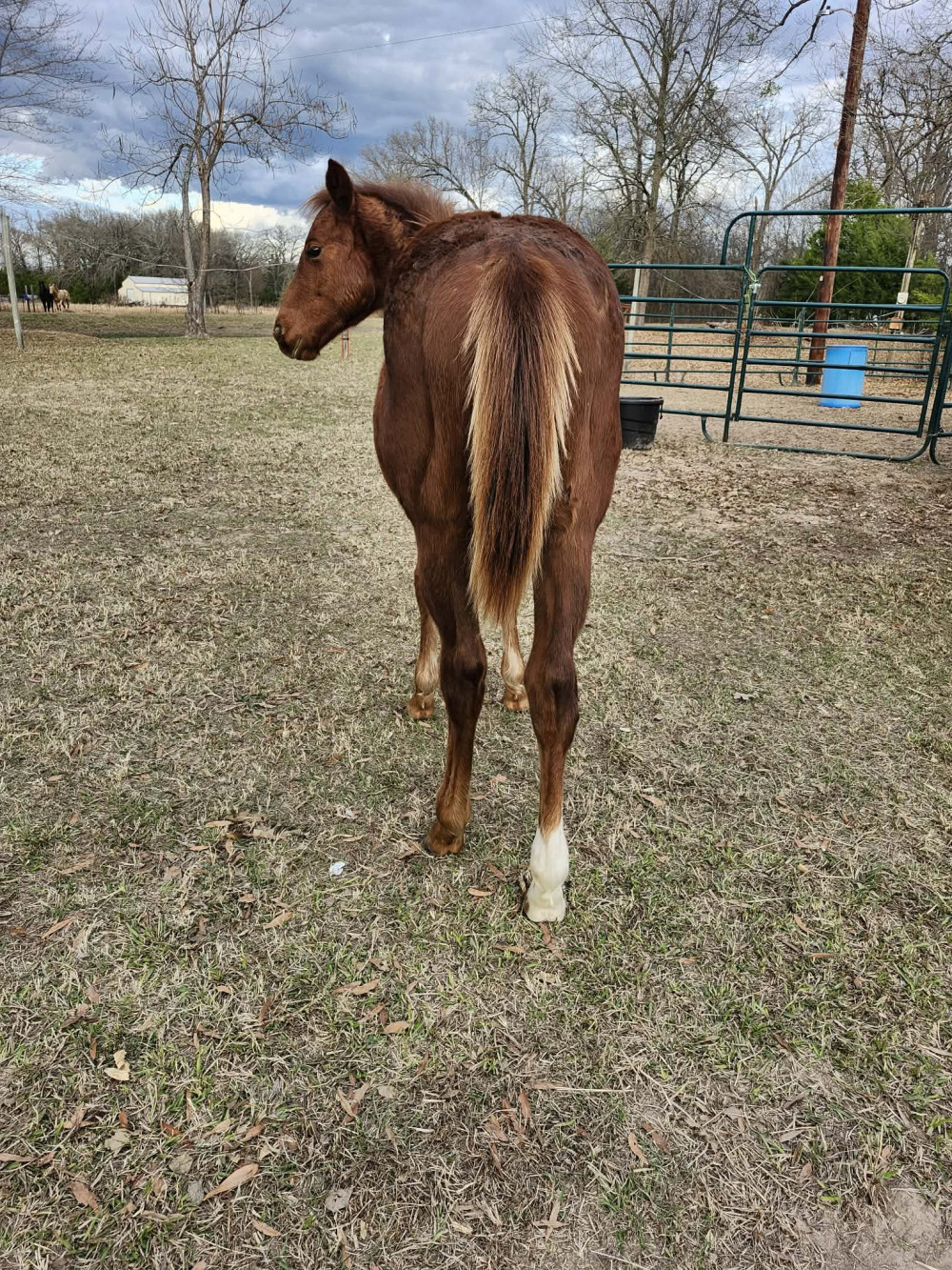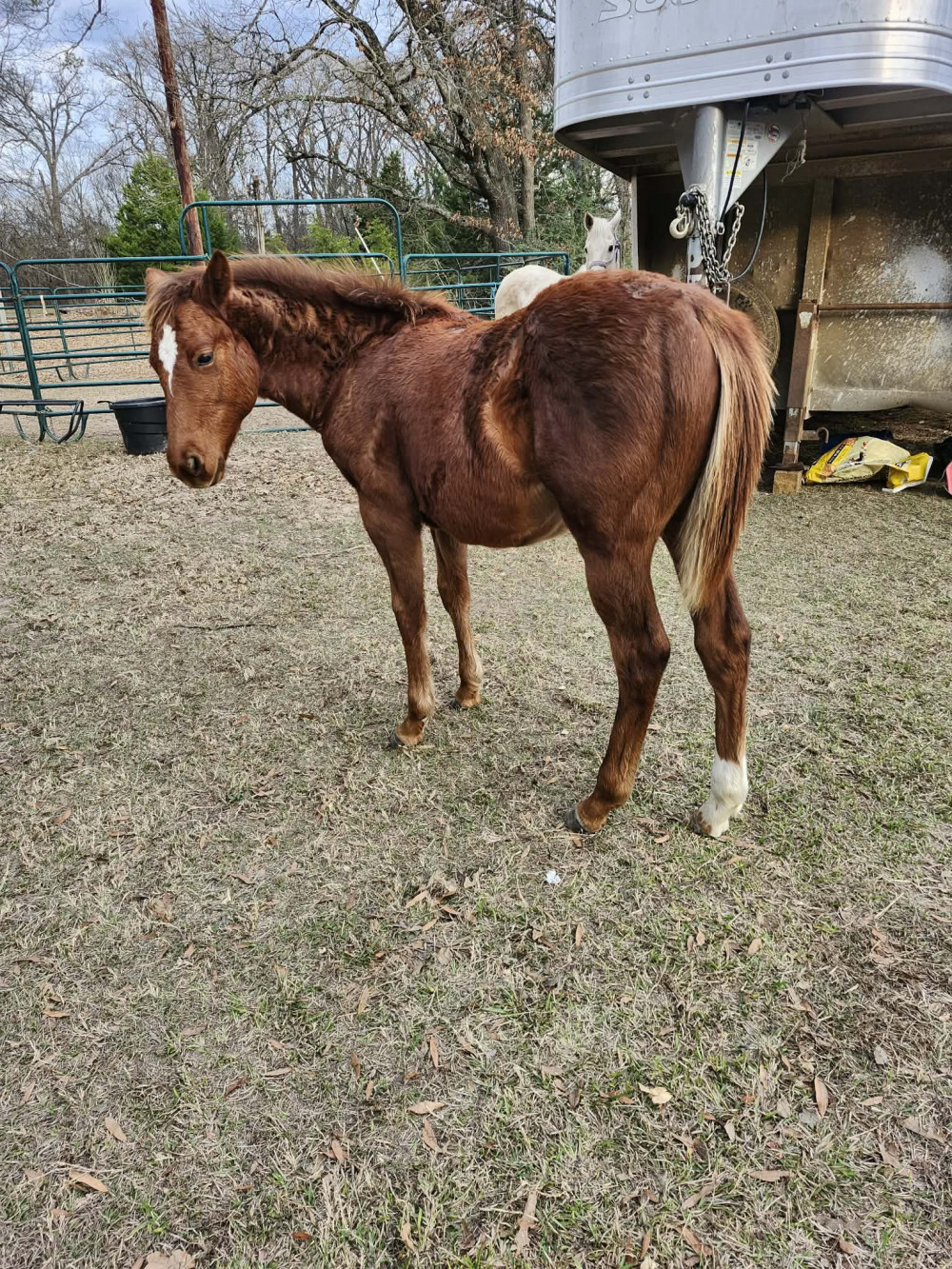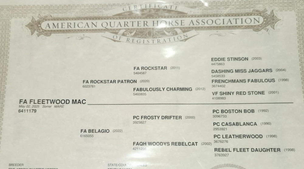 Mac is a 8 month old sorrel filly , has thick as she is wide. Shes a great grand daughter of Eddie stinson and Frenchmans Fablous. Shes halter broke, leads, Loads, and stands tied like the big girls. Shes one of the sweetest kindest fillies ive had. She easy to catch. Very smart and in your pocket. Shes going to be one that you can go anyway way with. Signed papers and transfer in hand.