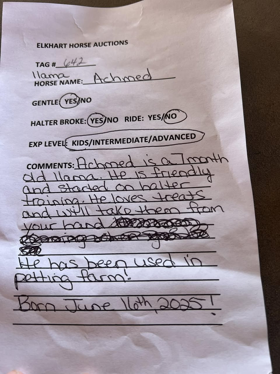 LLAMA 7 MONTH BLACK MALE "ACHMED" (#642) Rubber Duck Horse Sale Jan. 17, 2026