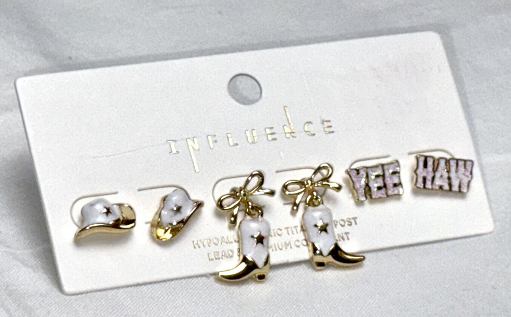 Set a 3 capital Western Earrings WHITE Yeehaw (#5) Savanna’s Birthday Sale