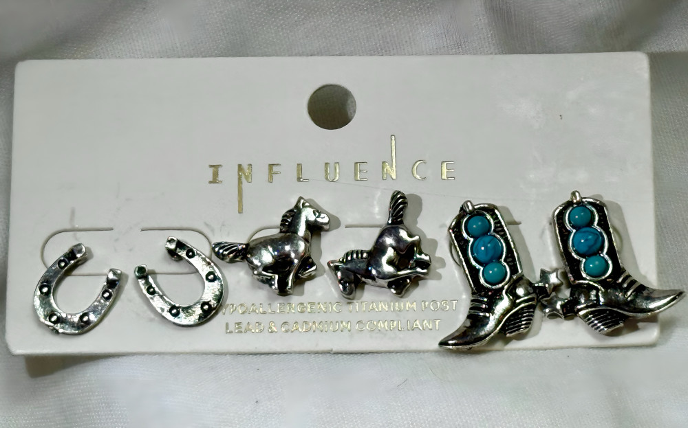 SET OF 3 WESTERN EARRINGS RUNNING HORSE (#12) Savanna’s Birthday Sale