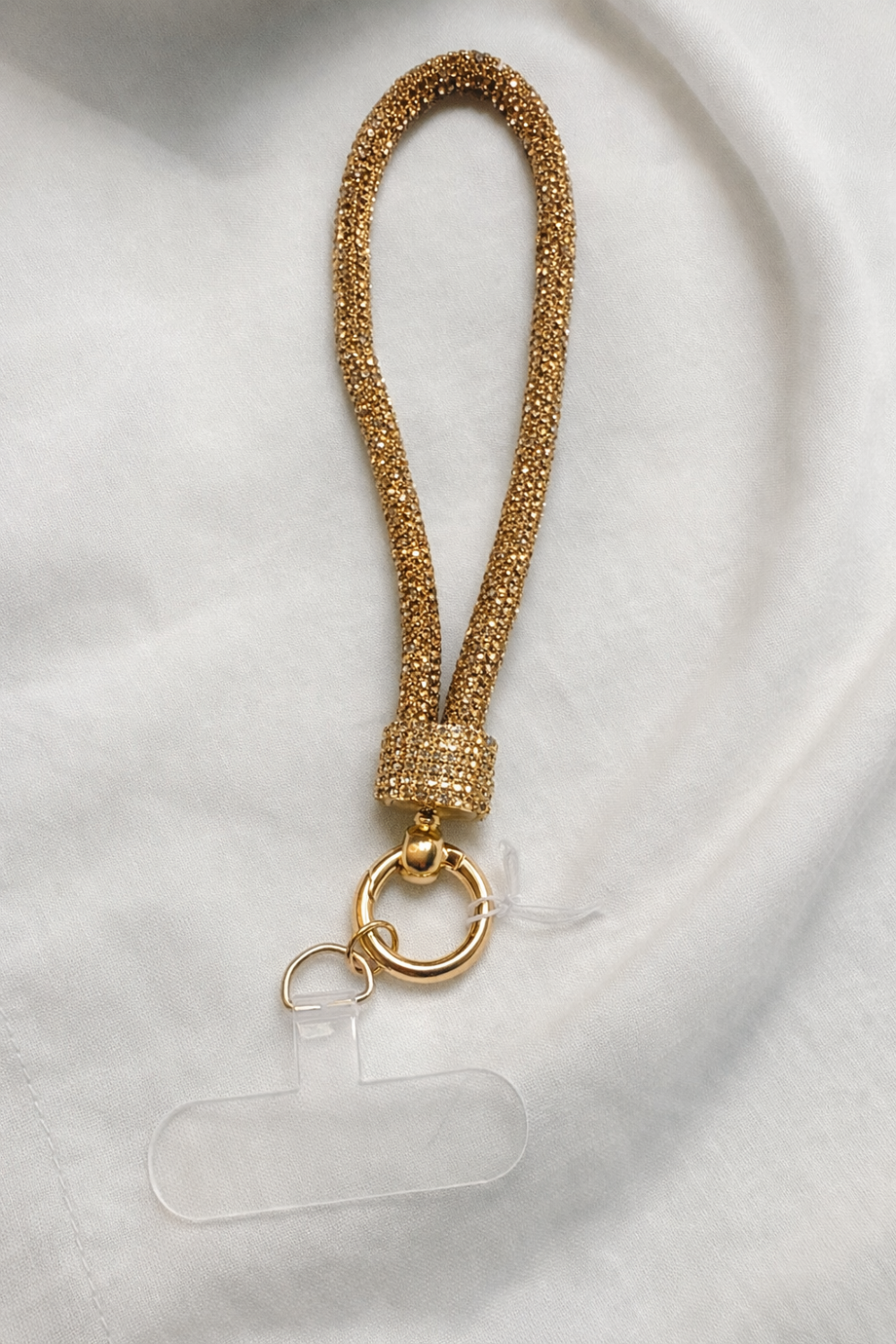 Gold Rhinestone Wrist Lanyard with Gold Key Ring (#32) Savanna’s Birthday Sale