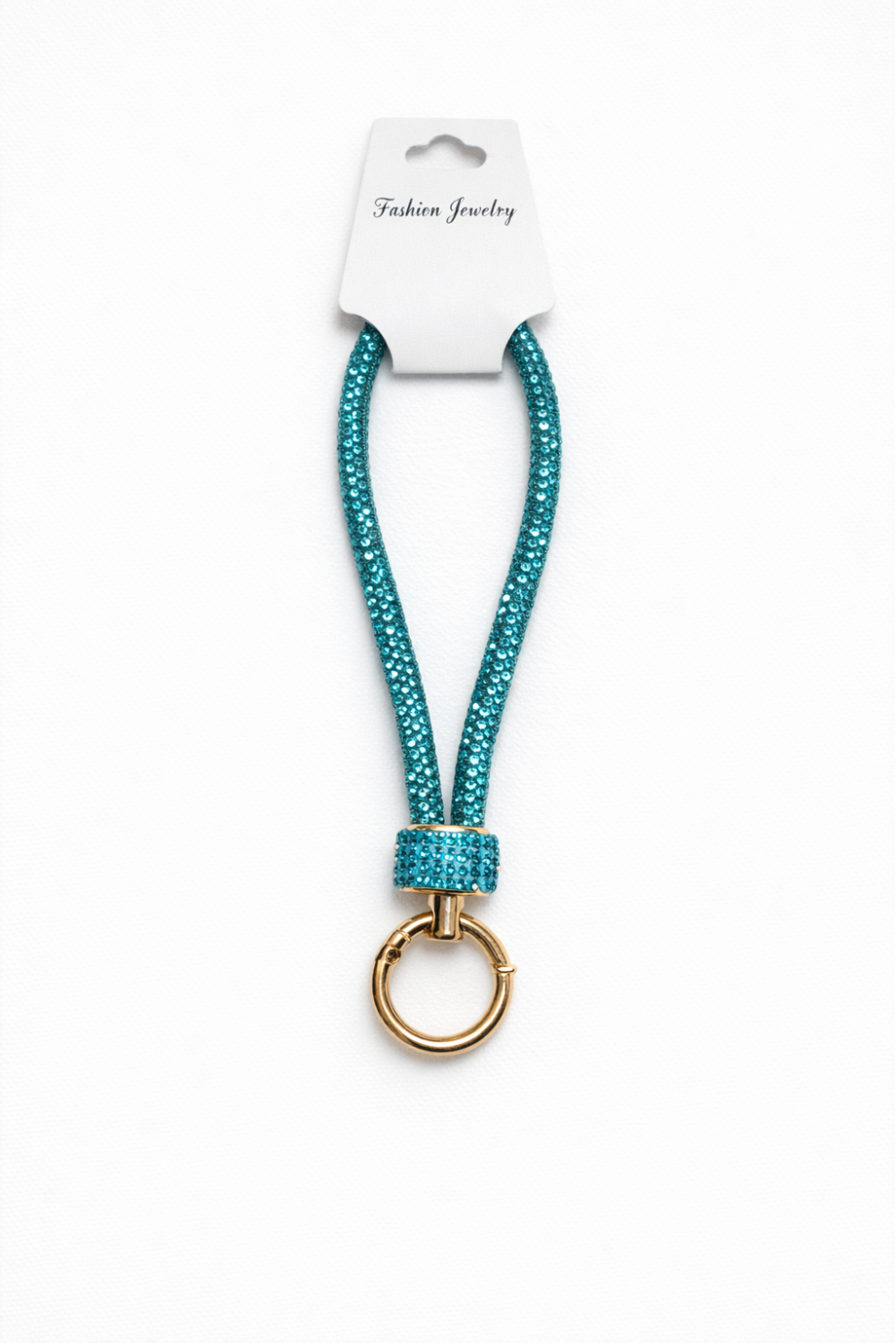 Teal Rhinestone Wrist Lanyard with Gold Key Ring (#33) Savanna’s Birthday Sale