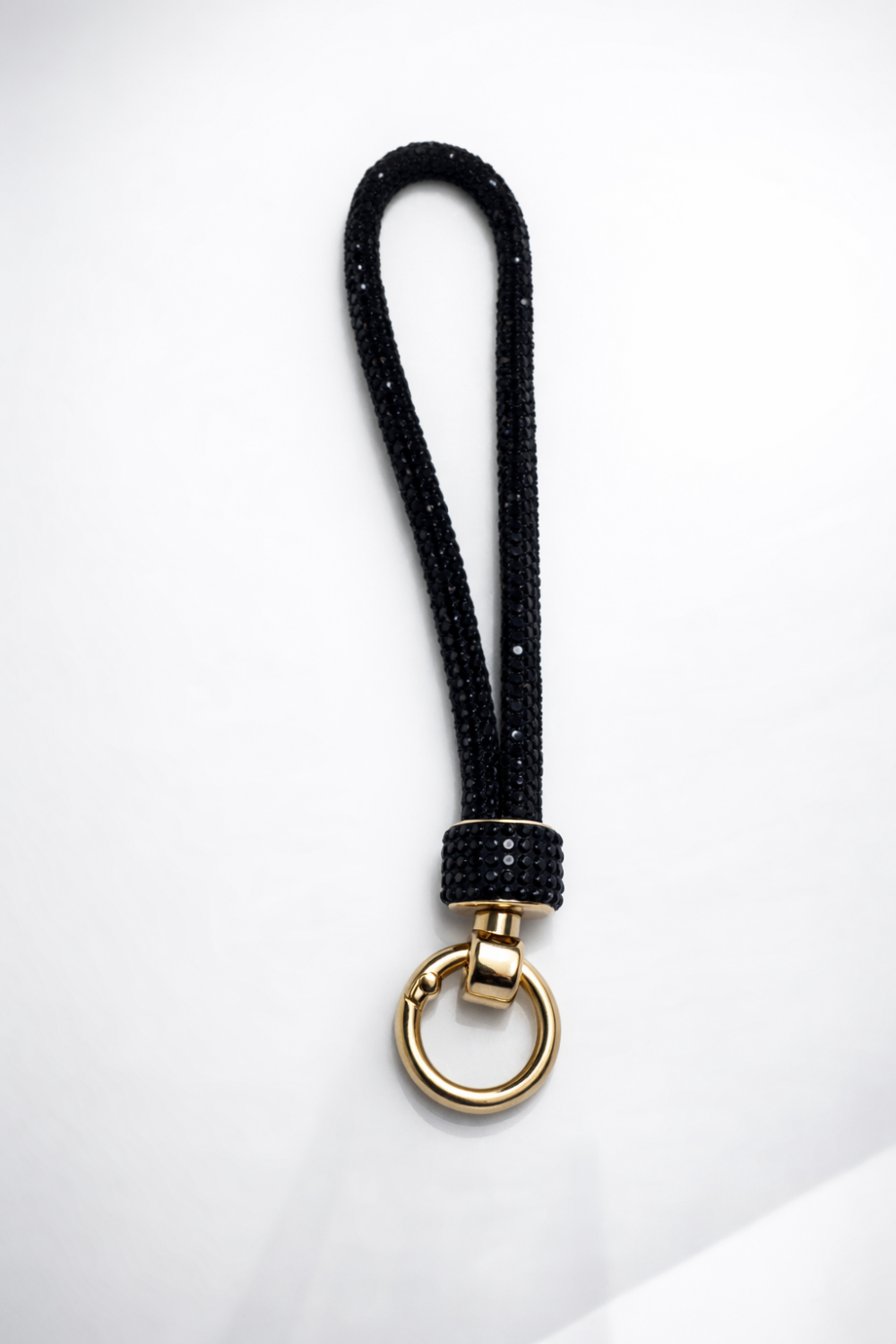BLACK Rhinestone Wrist Lanyard with Gold Key Ring (#63) Savanna’s Birthday Sale