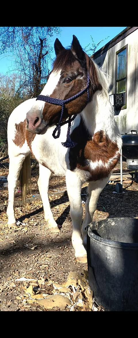 16yr old mare. About 14.2 hh. She has done playdays, been used on the ranch, have roped off her, and she's a great trail horse. She stands tied she is good with the farrier loads and unloads like a dream, has a nice handle, she is very responsive and has a big motor when asked she is gentle sane and quiet