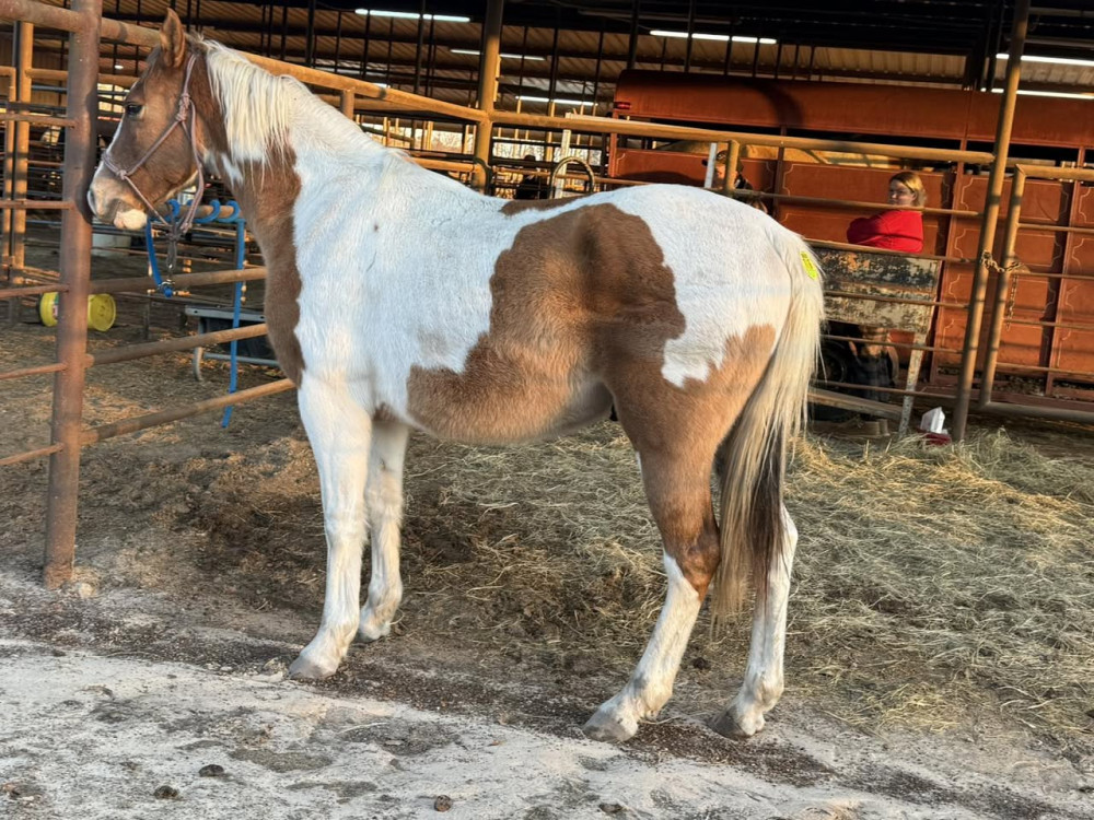 PT 5 YR DUN/WHT GELDING (#716) JANUARY 31,2026 HORSE SALE SADDLES START AT 6 PM HORSES AROUND 7:30PM