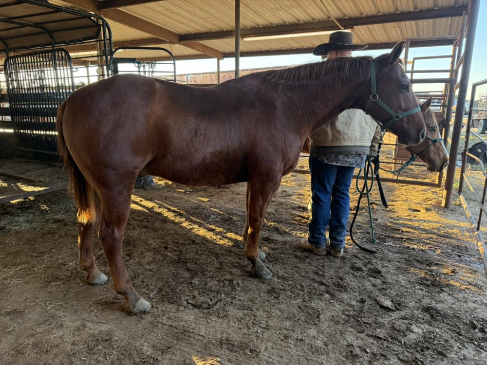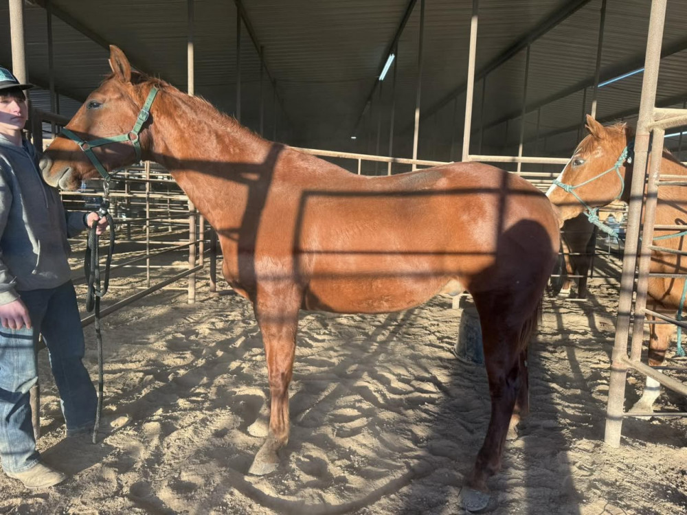 QH SORREL GELDING (#724) JANUARY 31,2026 HORSE SALE SADDLES START AT 6 PM HORSES AROUND 7:30PM