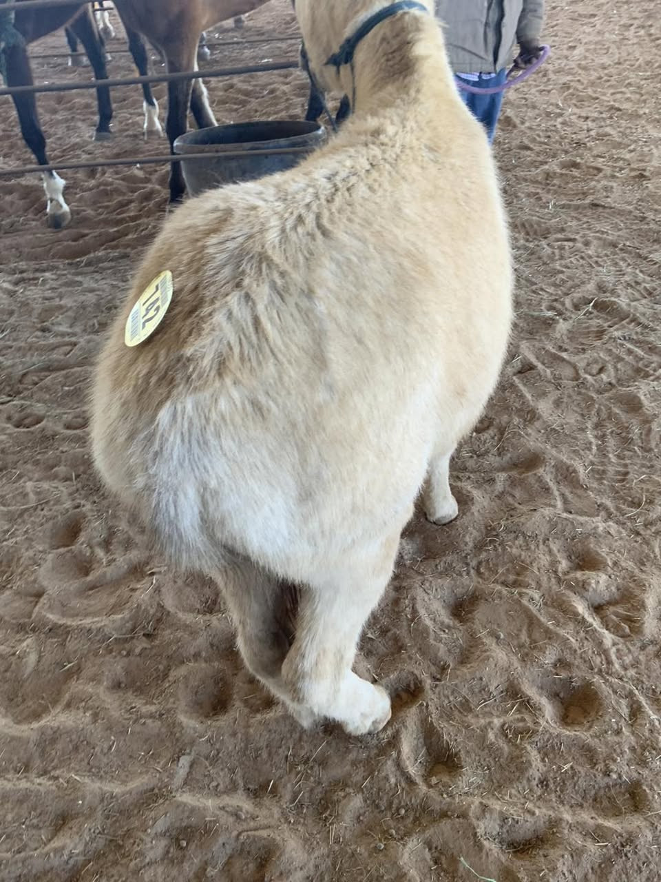 DONKEY 3 YR WHITE JACK (#742) JANUARY 31,2026 HORSE SALE SADDLES START AT 6 PM HORSES AROUND 7:30PM