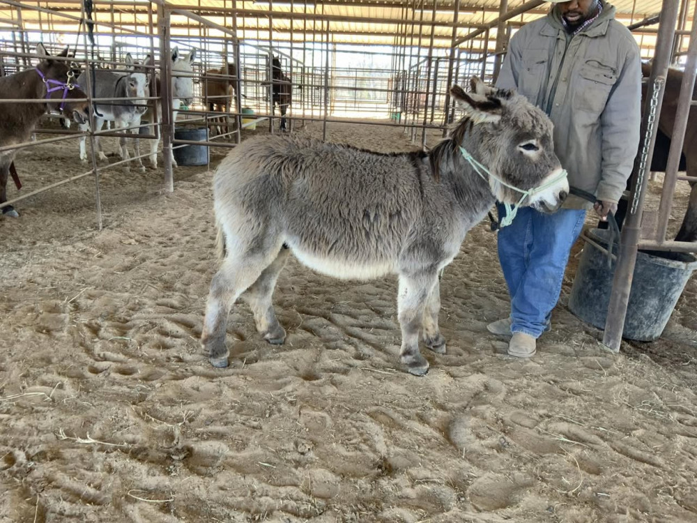 MINI DONKEY 3 YR GREY JACK (#743) JANUARY 31,2026 HORSE SALE SADDLES START AT 6 PM HORSES AROUND 7:30PM