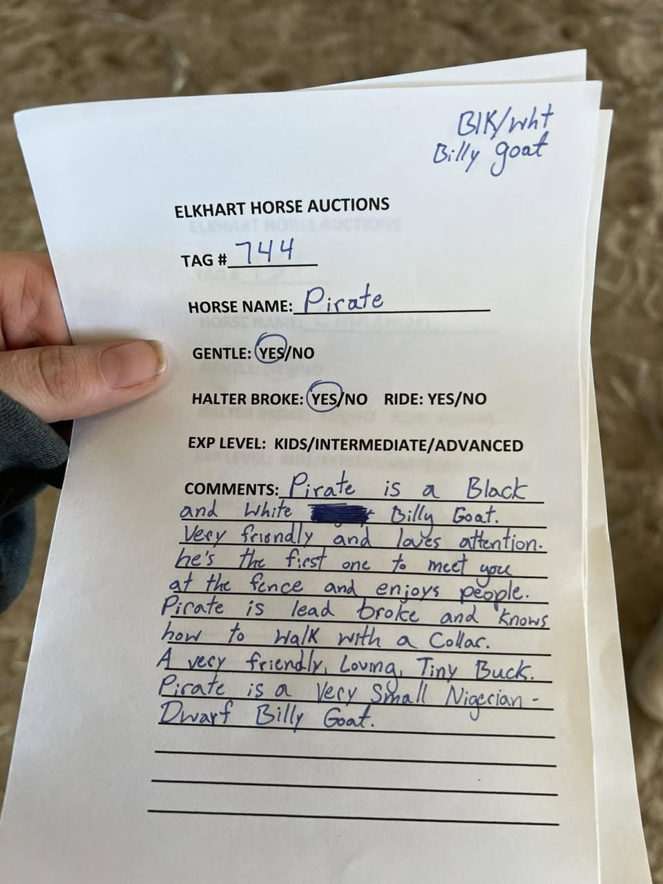 GOAT BLK/WH BILLY (#744) JANUARY 31,2026 HORSE SALE SADDLES START AT 6 PM HORSES AROUND 7:30PM