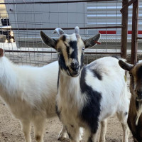 NIG DWARF 1 YR WHITE SPOTTED WETHER (#749) JANUARY 31,2026 HORSE SALE SADDLES START AT 6 PM HORSES AROUND 7:30PM