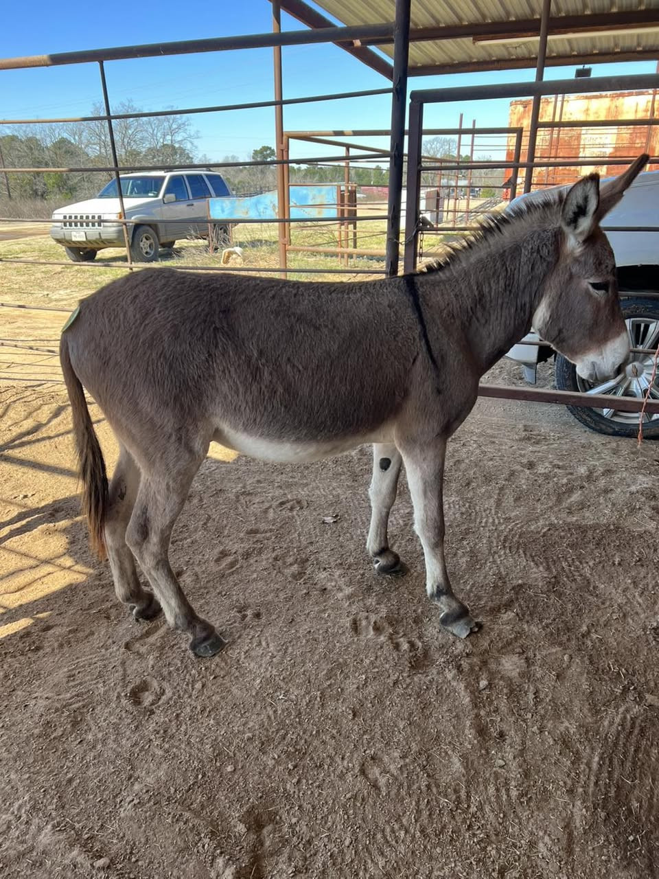 DONKEY 6 YR GREY JACK (#765) JANUARY 31,2026 HORSE SALE SADDLES START AT 6 PM HORSES AROUND 7:30PM