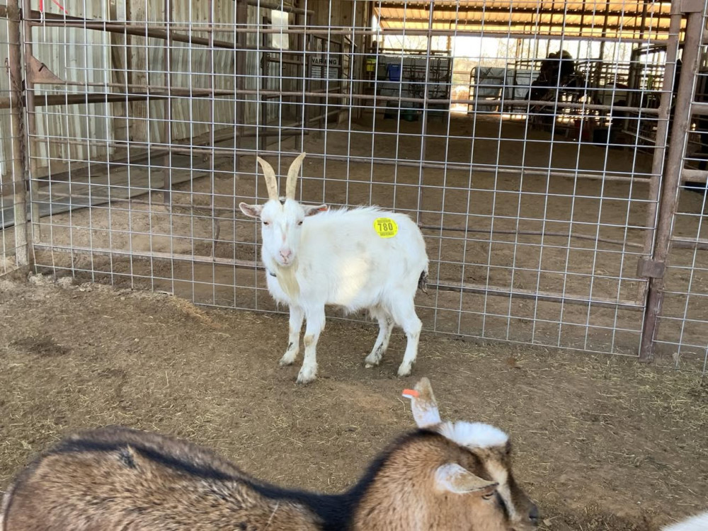 NIGERIAN DWARF GOAT. WHITE NANNY (#780) JANUARY 31,2026 HORSE SALE SADDLES START AT 6 PM HORSES AROUND 7:30PM