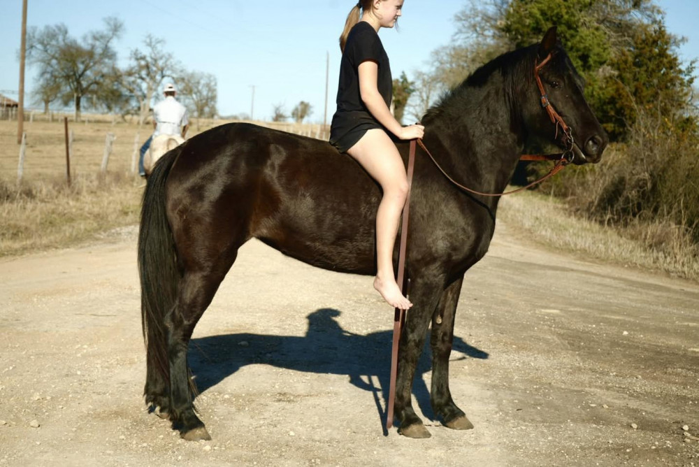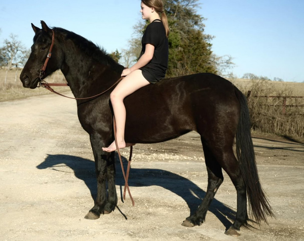 Star is a 9-year-old coal black gaited mare standing around 14hh. She’s super sweet, easy going, and fun to ride. Star is happy to mosey along slow and easy, or step it up and zoom when you ask – whatever speed you like. She’s a great little mare with a smooth gait and is perfect for hitting the trails. Kind, handy sized, and enjoyable to be around, Star is ready for her next adventure!