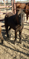 Juicy is a black mini mare. She is exposed back to a mini stud