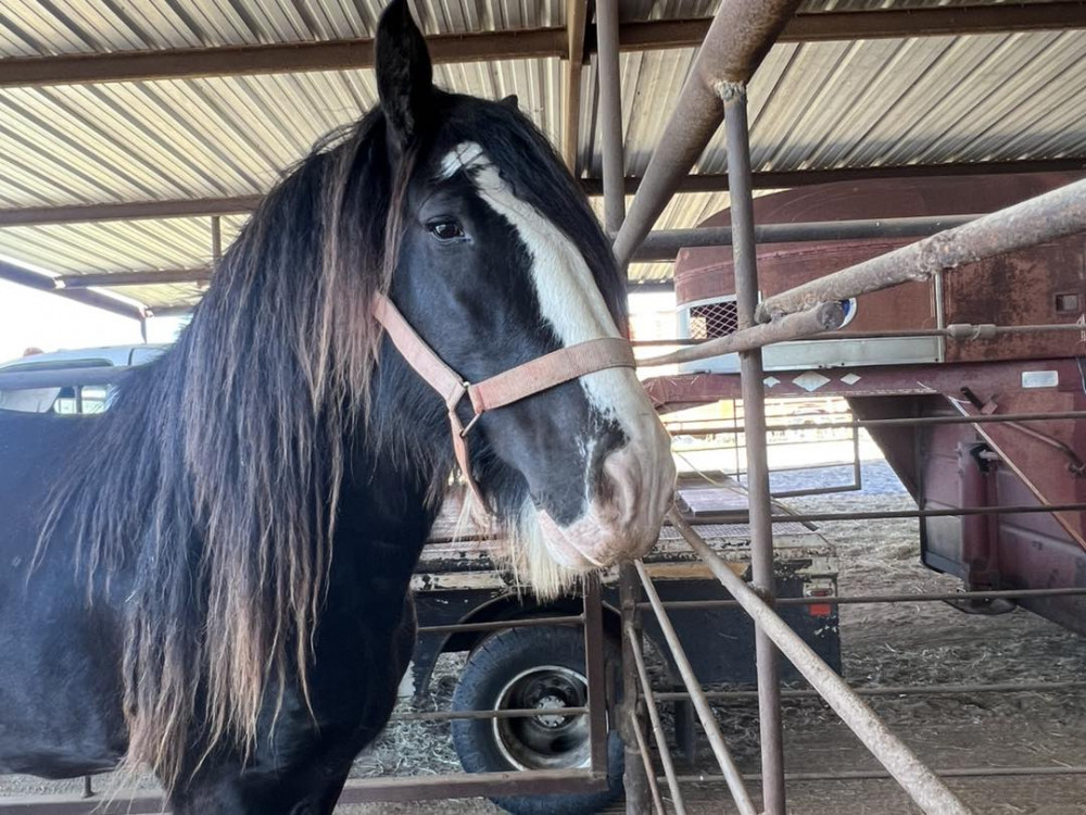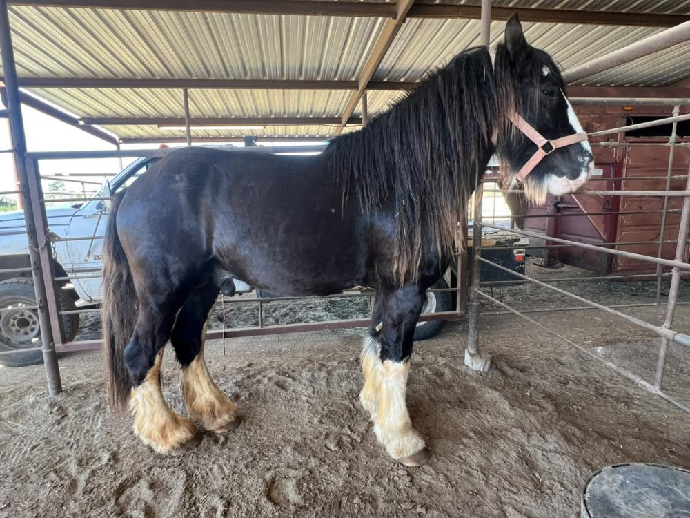 CLYDESDALE/SHIRE 6 YR BLK/WH STUD (#865) USED TACK AND HORSE SALE FEB 7 2026 TACK STARTS AT 1PM, SADDLES @ 6PM HORSES AROUND 7:30
