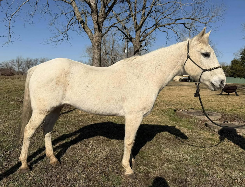 She loads and hauls well, ties, stands to be saddled, and stands quietly for the farrier. An easy keeper that is uncomplicated to own.