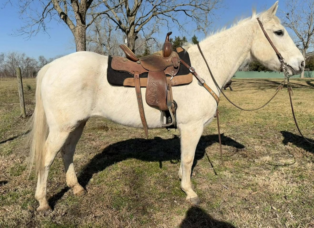 QH 16YR FLEA BITTEN GRAY "JELLY BEAN" (#891) USED TACK AND HORSE SALE FEB 7 2026 TACK STARTS AT 1PM, SADDLES @ 6PM HORSES AROUND 7:30
