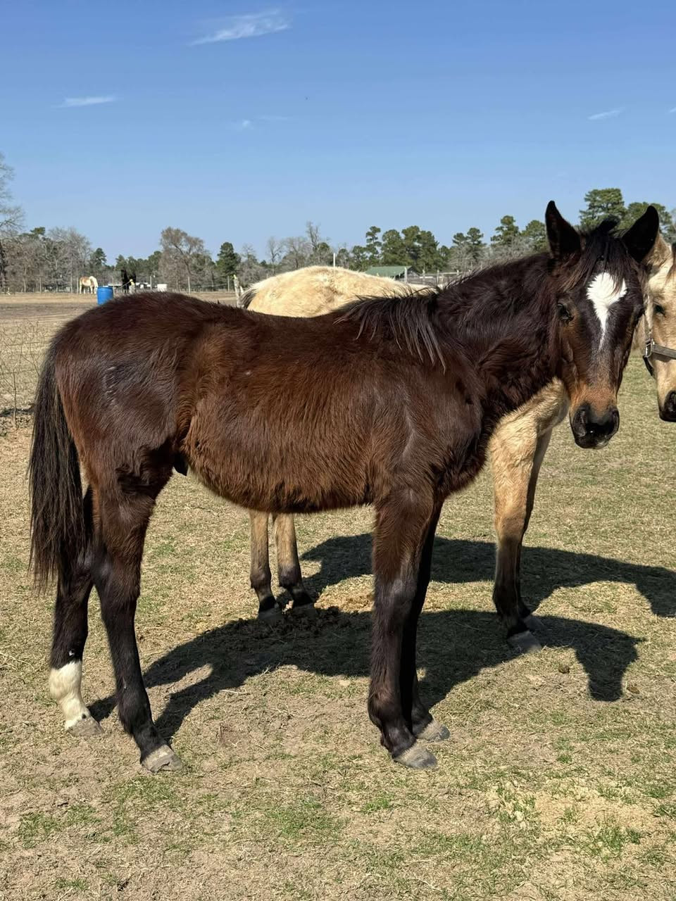 Registered 10 month old stud colt halter broke leads and ties stands for baths really sweet little boy will make a nice ranch horse or barrel horse.