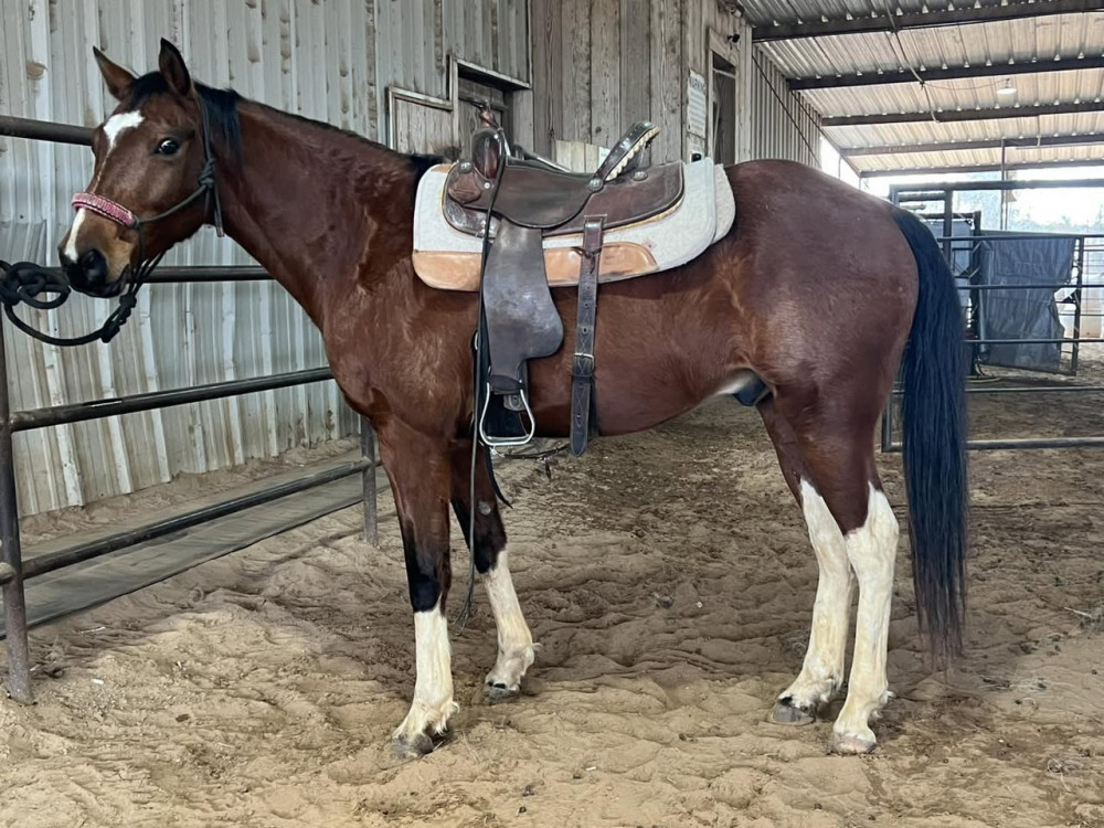 GAITED 6 YR BAY/WH GELDING (#31) VALENTINES DAY HORSE SALE FEB 14, 2026 AT 6 PM (PERFECT DATE NIGHT)