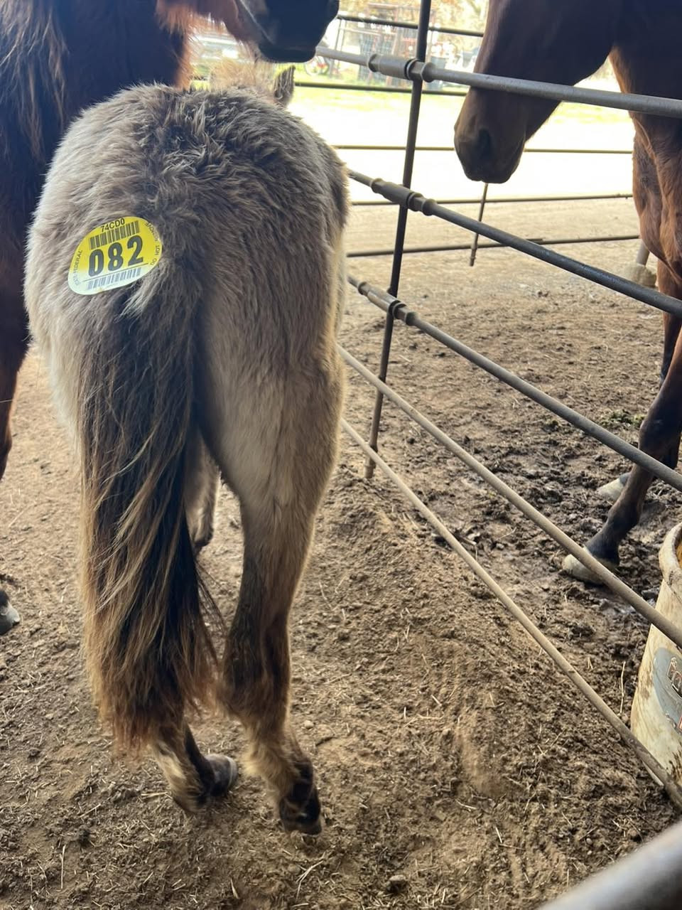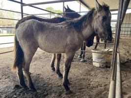THUNDER 8-Month-Old Colt | Charcoal Dun | Lineback I Tiger Stripes Eye-Catching Prospect Thunder is a striking 8-month-old colt with bold, primitive dun characteristics. His coloring is like a charcoal dun, line back, and distinct tiger stripes on his legs, giving