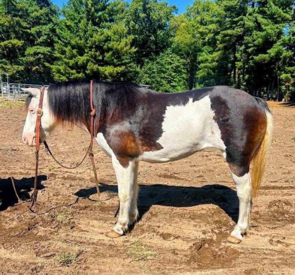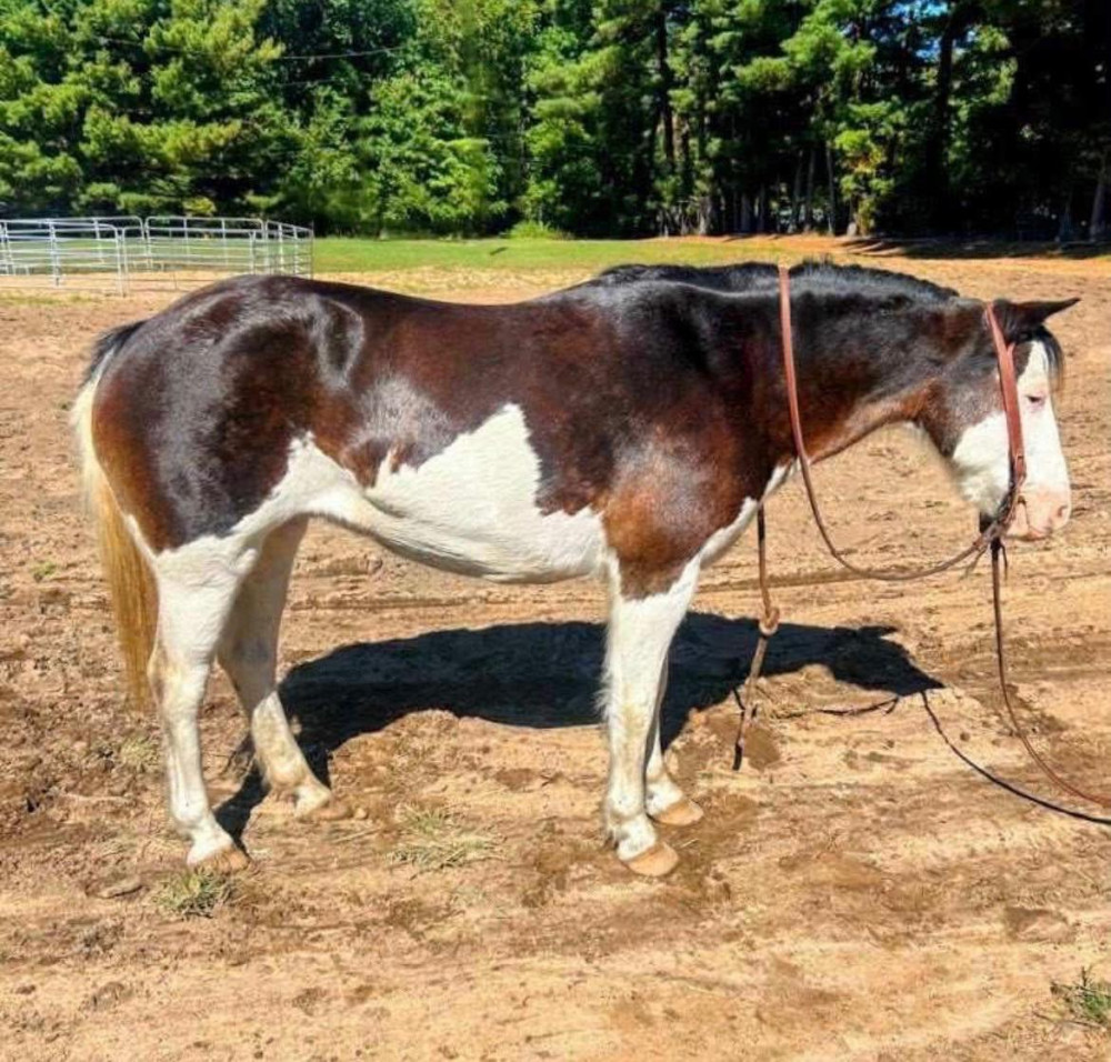 13yr old bay/white paint mare she stands about 13.2 hands tall. I purchased her for my daughter but my daughter isn’t confident enough to ride her just yet. She’s a timid rider. She will walk, trot, and lope off with a bigger more confident kid. She is a little hard to catch in a big pasture. She is good for a bath, picks up her feet, stands be groomed. She’s trot the barrel pattern and would be a good playday pony or trail pony for a more confident kid. We have headlined my daughter on her and she did fine for that. We need something more deadhead for her to learn on so she needs a new home.