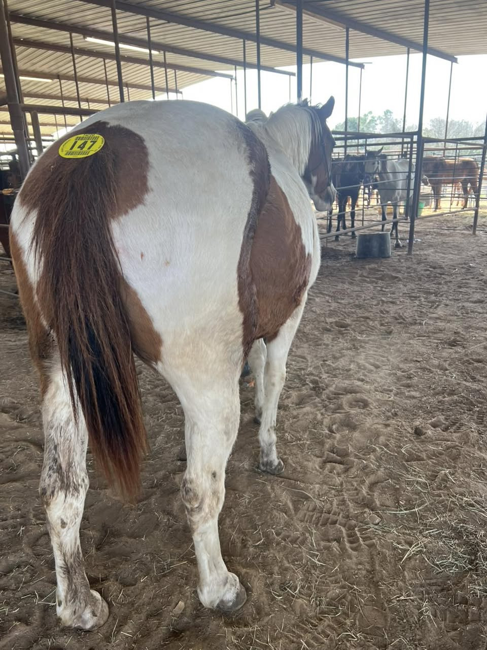 PT 10 YR RED/WH MARE (#147) HORSE SALE FEB 21, 2026 SADDLES START @ 6PM