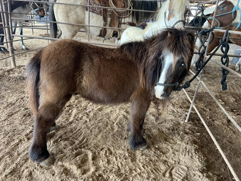 MINI PONY 9 YR BROWN GELDING (#154) HORSE SALE FEB 21, 2026 SADDLES START @ 6PM