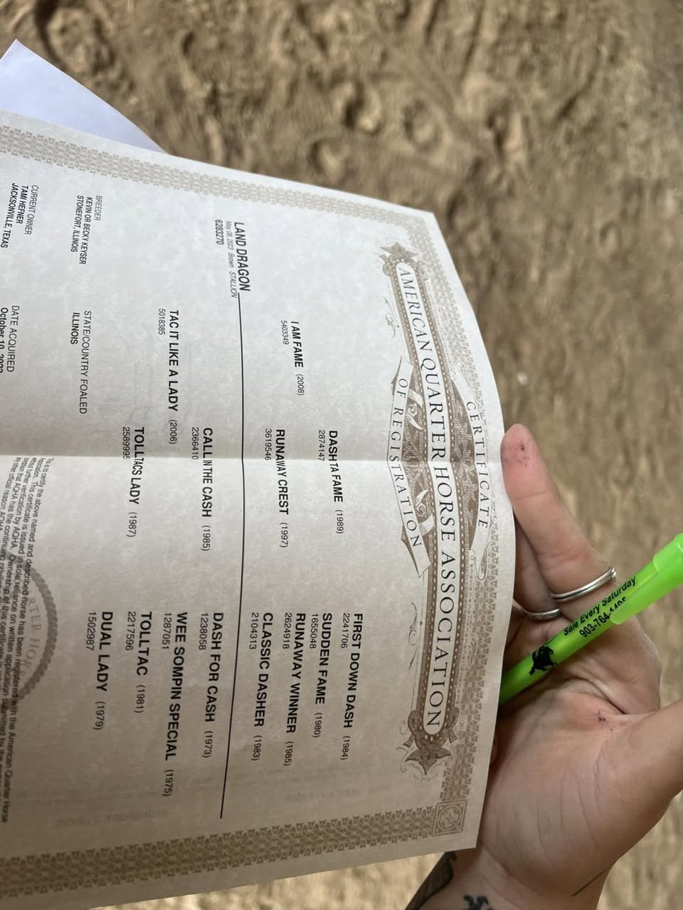 IMPECCABLE RACING BLOOD AND WOULD PRODUCE AWESOME FOULS ON RANCH BRED MARES!