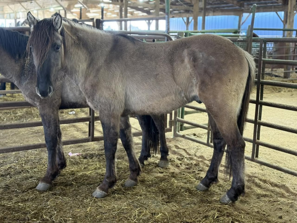 Fjord xQH yearling colts. 1/2 brother TO TAG 126. They should get big and stout. They have the perfect grullo color and are super cute. They are a blank canvas.