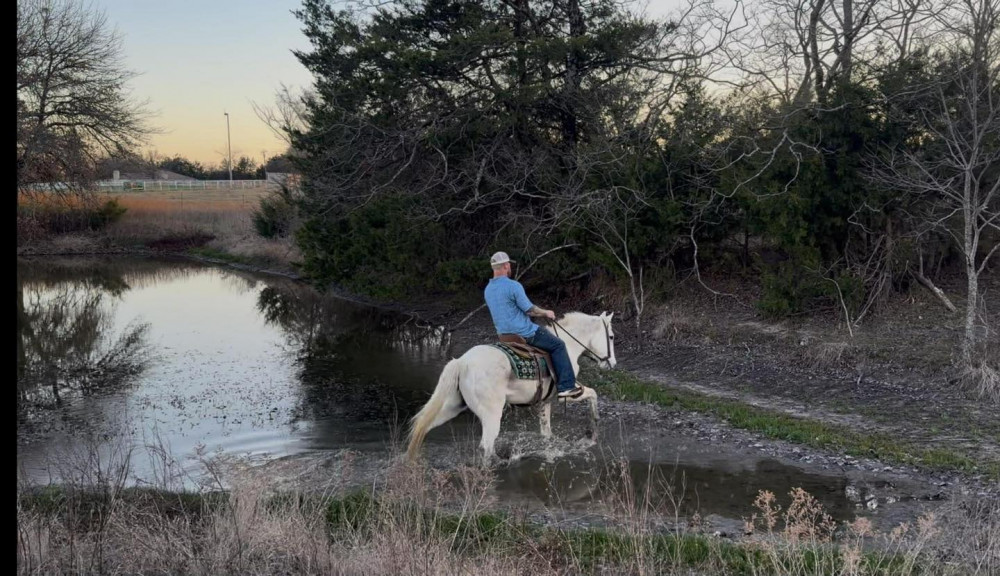 Jasper is a QH 16yr old grey gelding that stands about 15 hands tall. He is super gentle to handle, he is good to be groomed, picks up his feet, stands tied, loads, stands to be saddled and mounted. Walk up and catch him anywhere, he’s good for a bath. He is one hand broke with a good stop. He will walk, trot and lope off when ask. He trail rides like a dream. He will go thru the pond, up and down steep hills, ride thru brush, walk over logs, and pretty well goes where you point his nose. We have swung and throw a rope off him, drug a cone, carried the cone on him, and not much seems to phase him. If you know the basics to riding I’d say you can him.