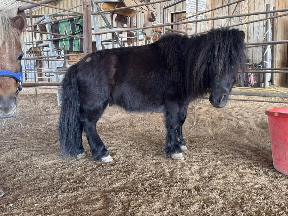 MINI PONY 4 YR BLACK GELDING. "DARTH" (#226) HORSE SALE FEB 28,2026 @ 6 PM WITH SADDELES N HORSES START AROUND 7:30PM