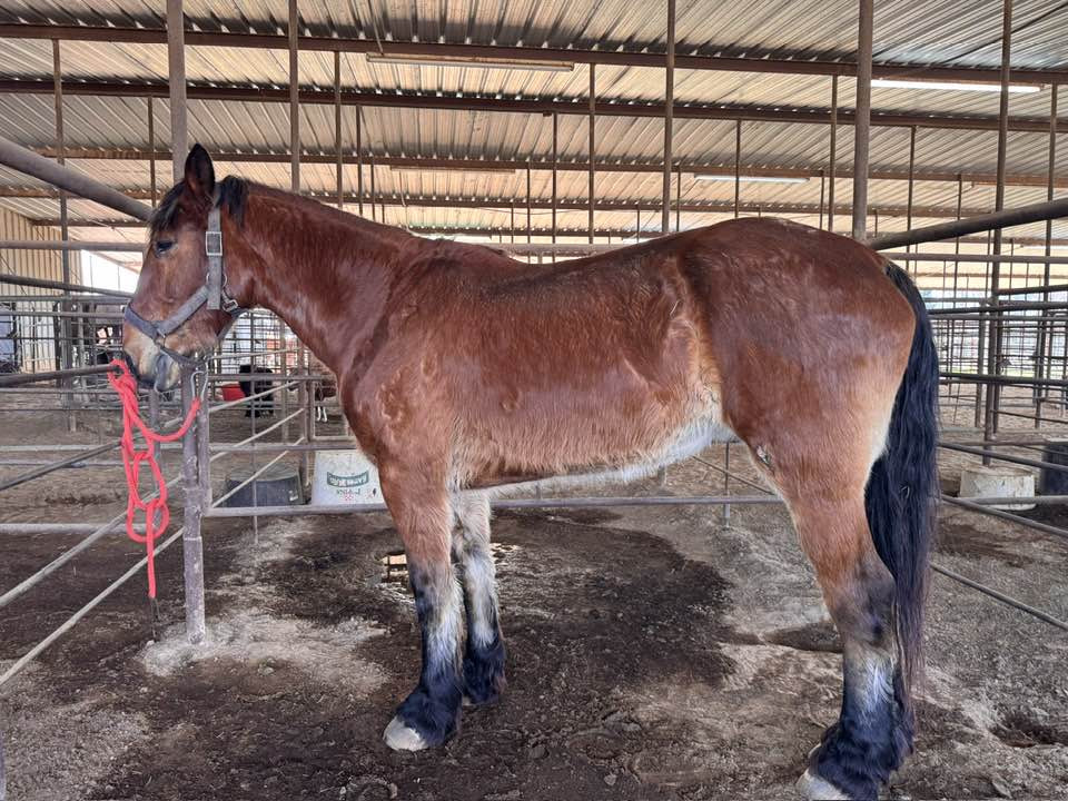 DRAFT 15 YR BAY MARE (#242) HORSE SALE FEB 28,2026 @ 6 PM WITH SADDELES N HORSES START AROUND 7:30PM