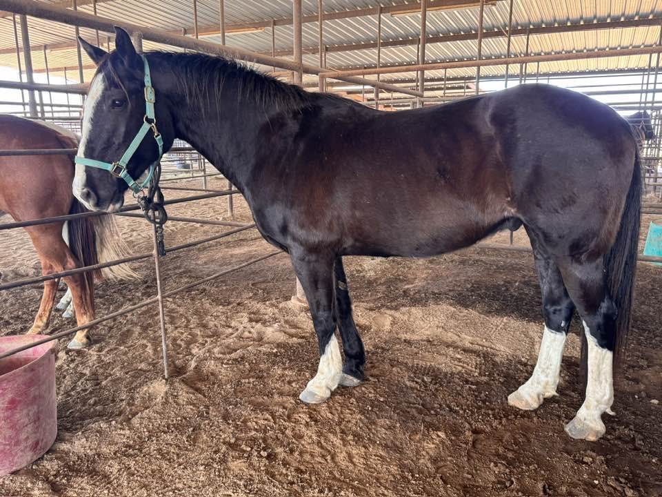 QH X 10 YR BLACK GELDING. "NIP" (#243) HORSE SALE FEB 28,2026 @ 6 PM WITH SADDELES N HORSES START AROUND 7:30PM