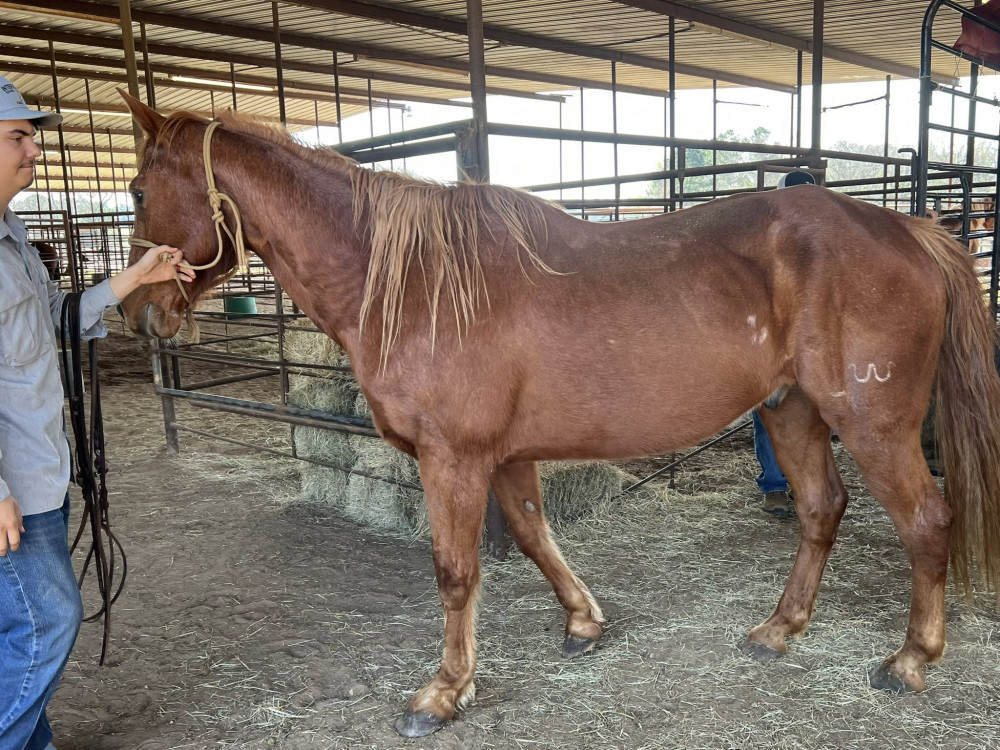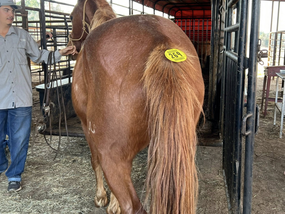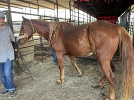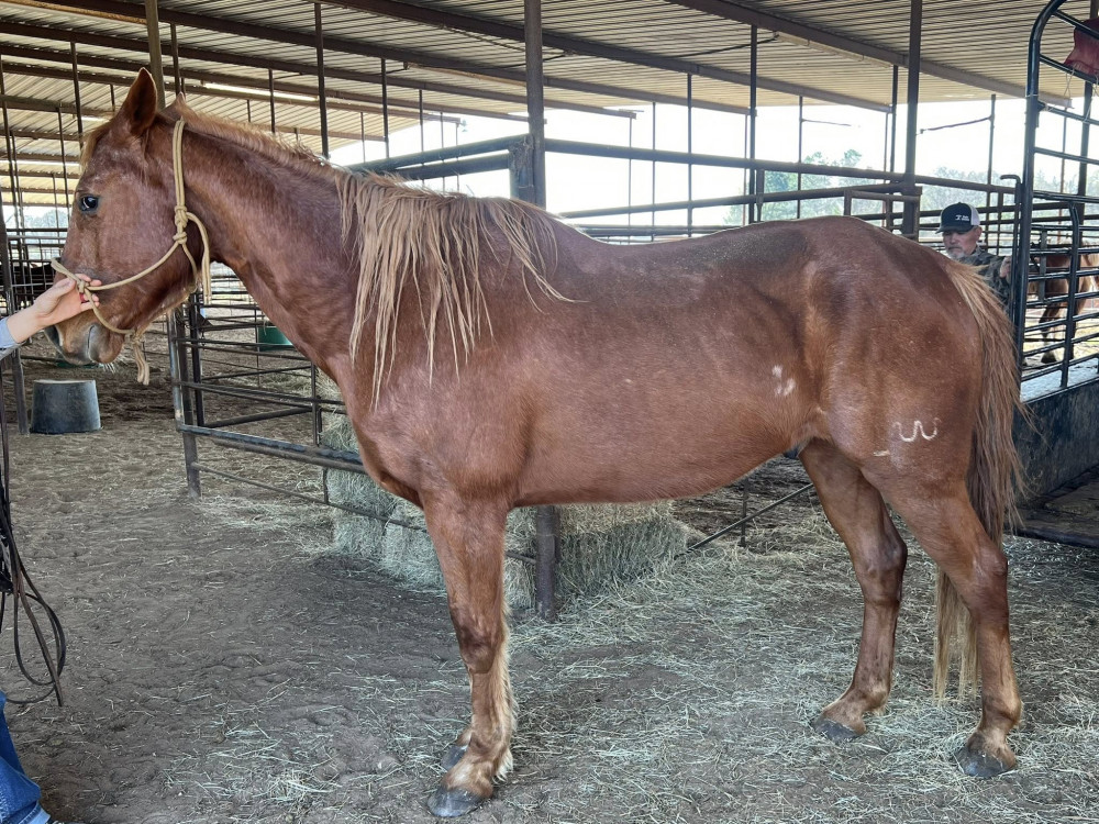 QH 15 YR RED ROAN GELDING (#269) HORSE SALE FEB 28,2026 @ 6 PM WITH SADDELES N HORSES START AROUND 7:30PM
